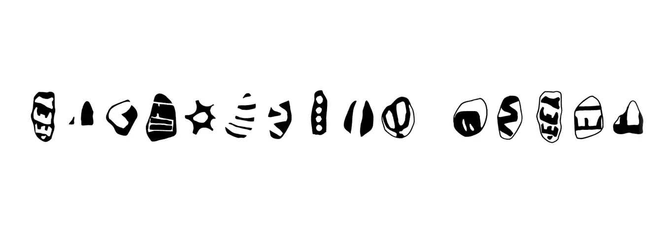 Созданы из очертаний разных объектов, которые не являются буквами. Например, Mas D’Azil, Kamysh.