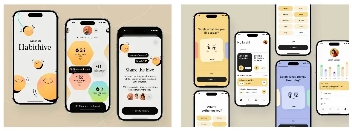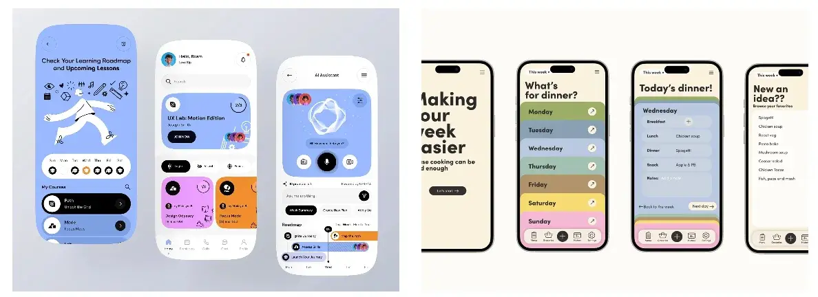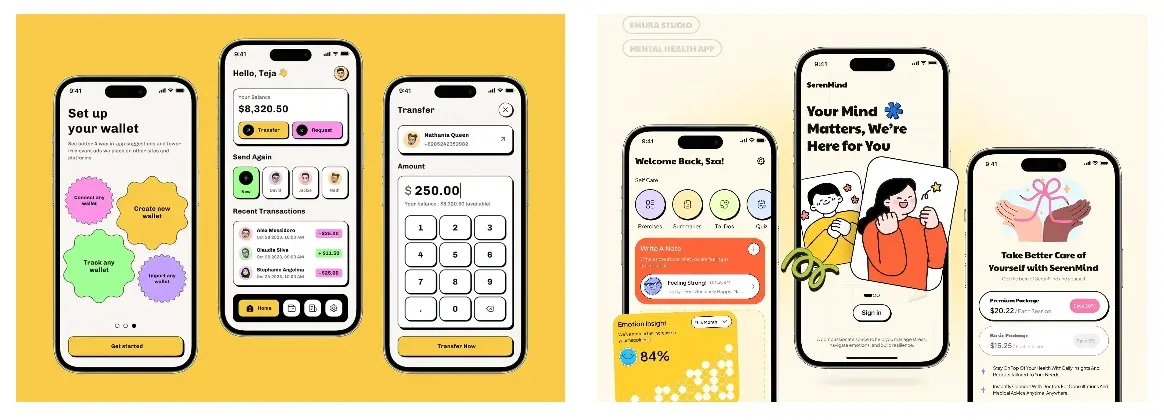 Этот тренд превращает цифровые интерфейсы в комфортные, ориентированные на человека пространства. Суть в том, чтобы сделать их дружелюбными цифровыми помощниками, а не холодными, безличными инструментами. Выбирайте простые лейауты, сочетайте мягкие нейтральные фоны с пастельными оттенками, игривыми иконками, обтекаемыми формами и массивными шрифтами. Добавляйте легкие текстуры и нежные градиенты, чтобы создать ощущение тактильности, и у вас получится уютное, дружелюбное цифровое пространство, сочетающее в себе технологичность и комфорт.