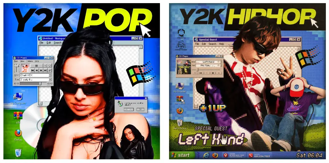 Подобные решения идеально подходят для брендов, связанных с музыкой, модой или субкультурами. Они способны добавить визуалу остроты. Например, фэшн-бренд может использовать контрастное сочетание многослойной графики и жирных шрифтов в стиле Y2K, а музыкальный магазин — глитчевые текстуры и неоновые градиенты.