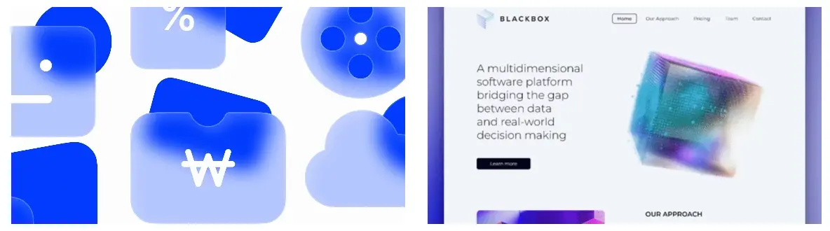 Этот тренд подойдет для создания элегантного и футуристичного, но при этом спокойного и дружелюбного образа. Он выходит за рамки UI и охватывает весь цифровой дизайн и даже фотографию, где матовые оверлеи и мягкие световые эффекты добавляют изображениям эффект трехмерности.