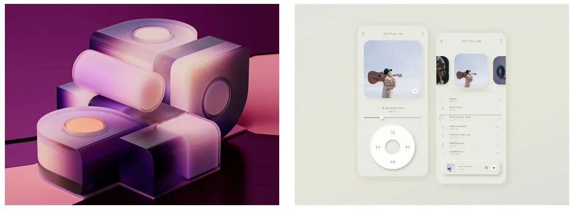 Панели из матового стекла, полупрозрачные слои и рассеянные тени возвращаются, и на этот раз они легко интегрируются в интерфейс. Такой дизайн выглядит мягким, тактильным и футуристичным одновременно. Эстетика матового стекла придает визуалу глубину, а скругленные края, мягкие тени и нежные градиенты усиливают ощущение осязаемости.