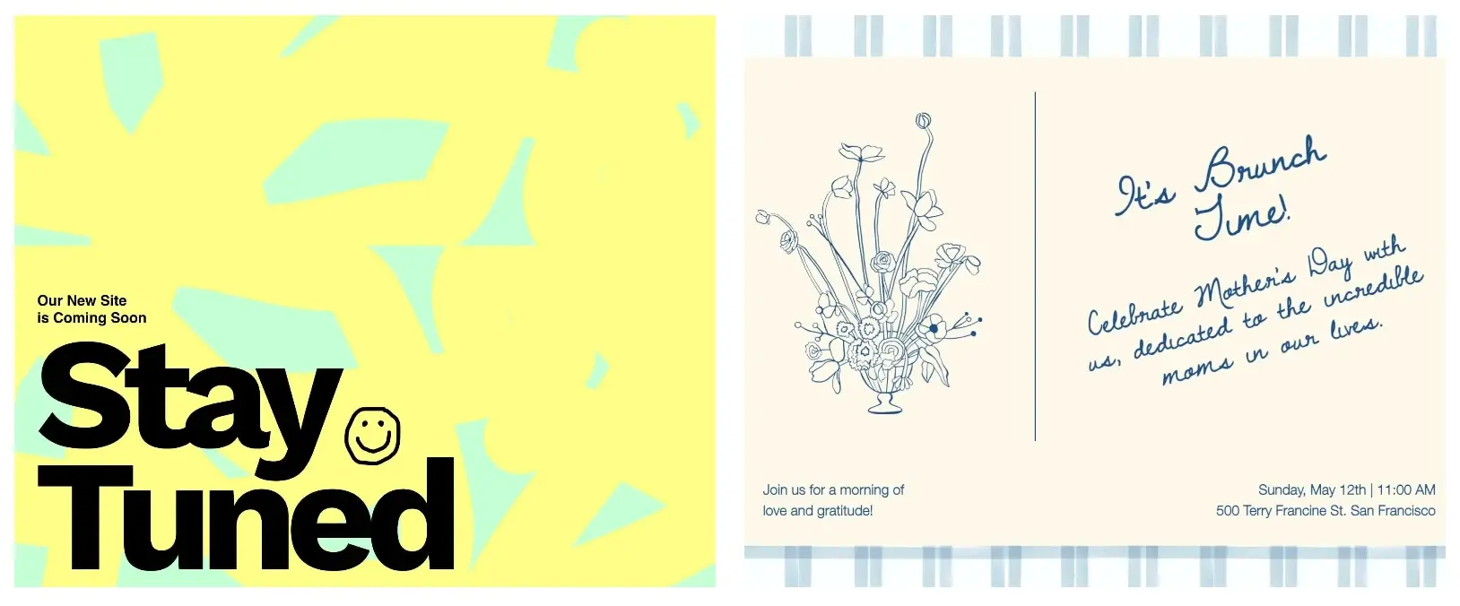 Совет: Накладывайте текст на изображения, смешивайте ностальгические шрифты и используйте визуальные контрасты, чтобы создать интригу и наполнить дизайн энергией.
