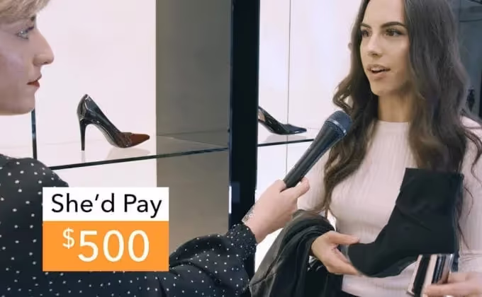 Инфлюенсеры заходят в магазин, они поражены роскошной атмосферой и изящно расставленной «дизайнерской» обувью. Сами того не зная, они смотрят на типичный ассортимент Payless — обувь, которая обычно продается по цене от 20 до 40 долларов. Тем не менее, они с радостью выкладывают за нее сотни долларов.
