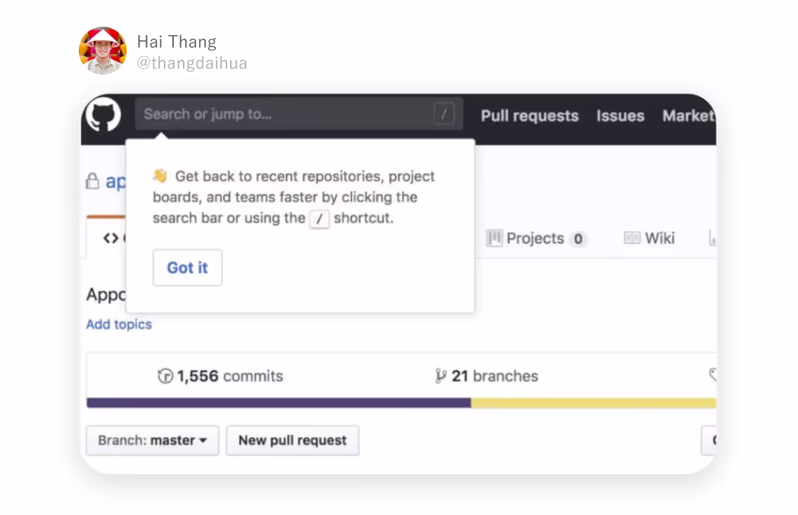 Распространенные случаи использования всплывающих подсказок — интерактивное пошаговое руководство, вторичный онбординг и представление функций. Вы можете найти отличные примеры в Medium, Slack, Wikipedia:
