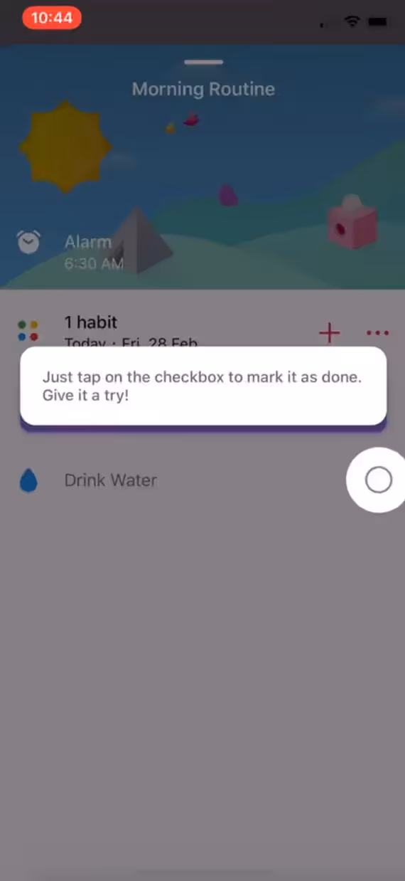 Fabulous — приложение для отслеживания целей, использовало интерактивные элементы для знакомства пользователей с относительно простыми и стандартными сценариями использования. Подобное решение является излишним.