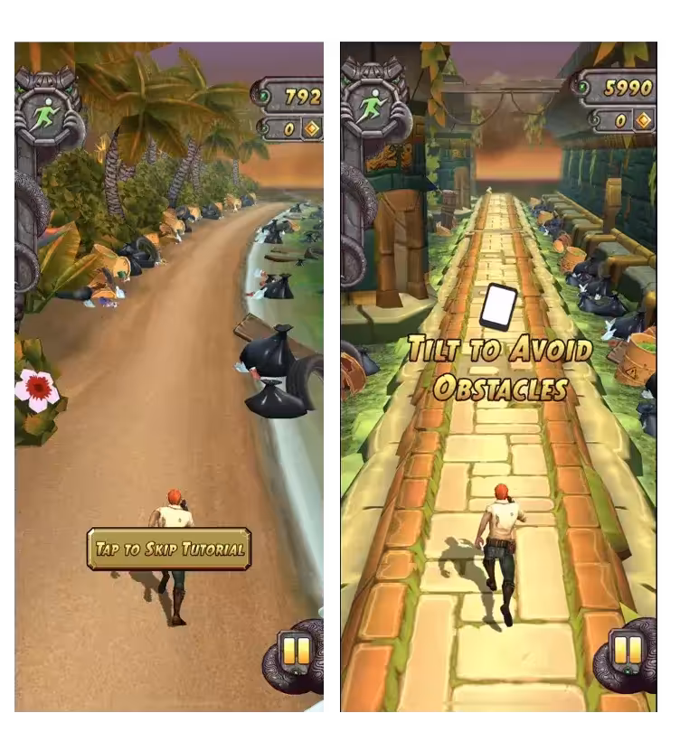 В игре Temple Run 2 был использован интерактивный подход, в рамках которого на экран выводились своевременные подсказки по мере прохождения игроками первого уровня. Например, при приближении к препятствию появлялись инструкции о том, как его можно избежать. Такое решение позволяло обучать пользователей управлять игрой и давало им возможность учиться, не прерывая игровой процесс.