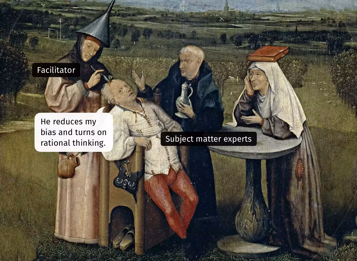 Даже если вы привлечете экспертов, они могут представлять различные области и сферы. Соответственно, они будут делать выбор по-разному. Кроме того, вы глубоко заблуждаетесь, если считаете, что люди способны мыслить рационально, даже будь они знающими и опытными людьми.