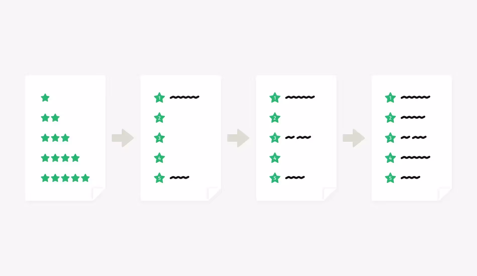 - Начните с экстремальных значений — минимальных и максимальных оценок. Определите, что будет означать 1 (или 0)? Что будет означать 5, 10, или что значит максимум?
