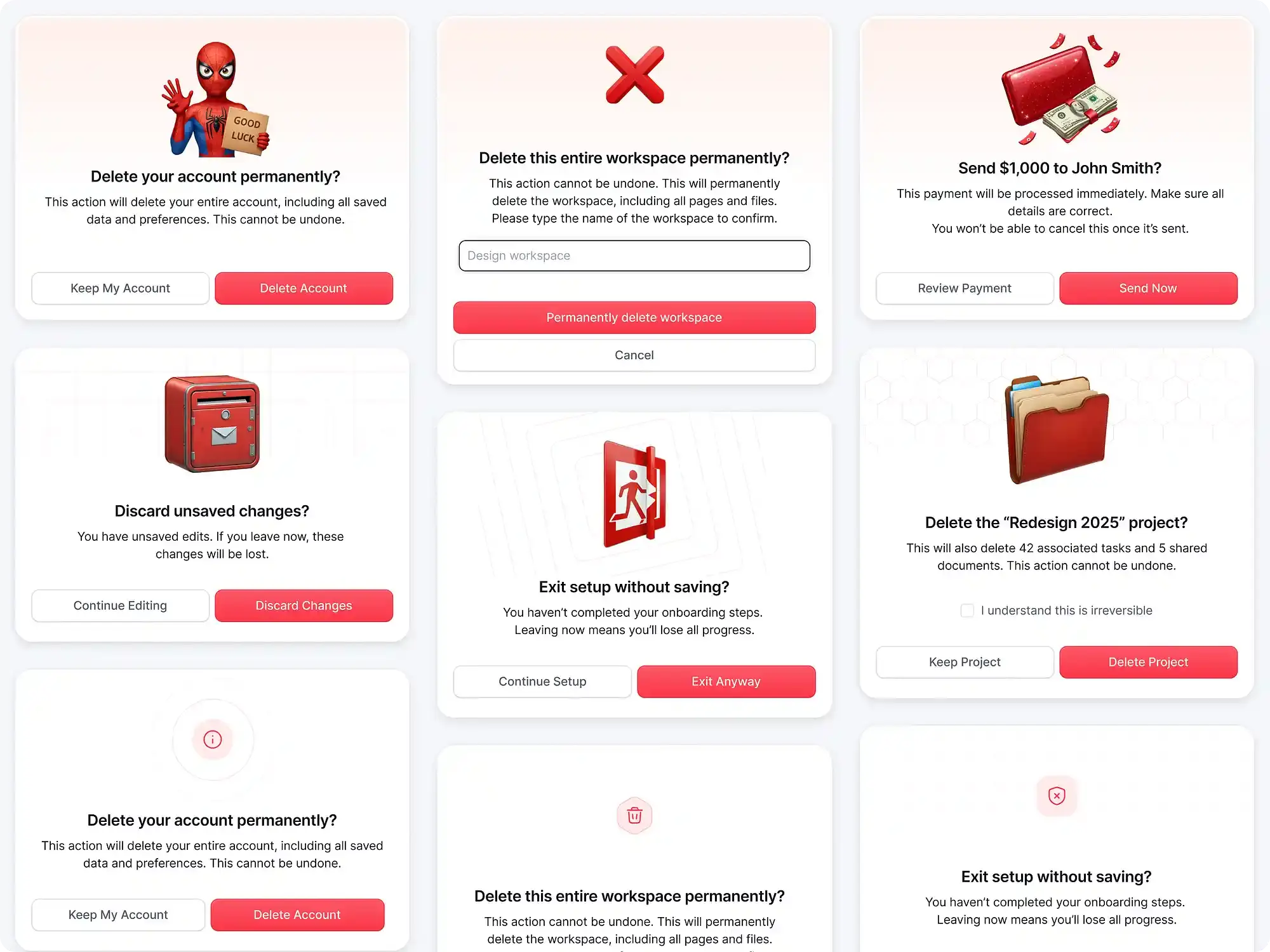 Хорошо спроектированные диалоговые окна подтверждения не ограничиваются вопросом «Вы уверены?». Это продуманные, многоуровневые UI-элементы, созданные для того, чтобы заставить пользователя остановиться, обеспечить ясность и предотвратить необратимые ошибки.