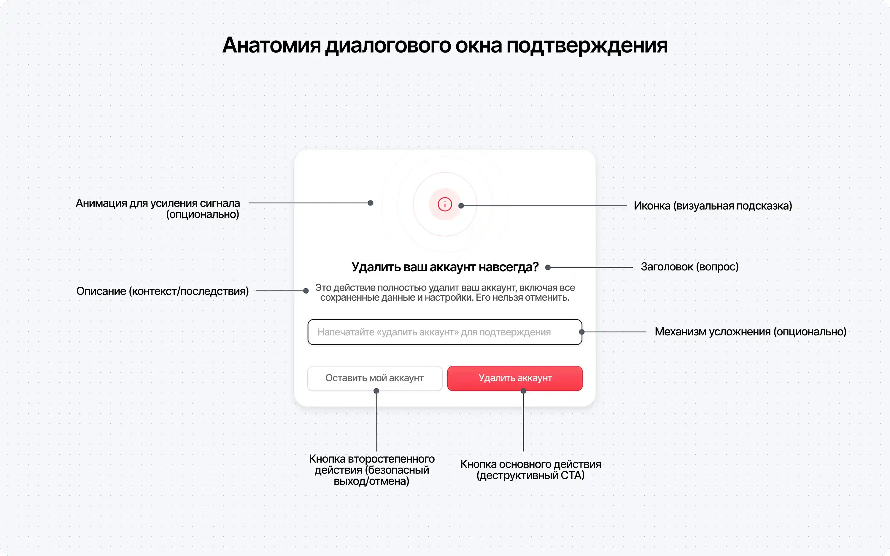 Вот из каких ключевых компонентов состоит эффективное диалоговое окно подтверждения: