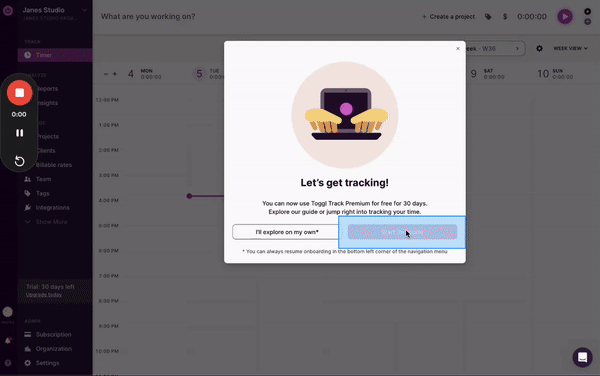 Пример избыточности — интерфейс Toggl. Вот что ждало меня после регистрации: