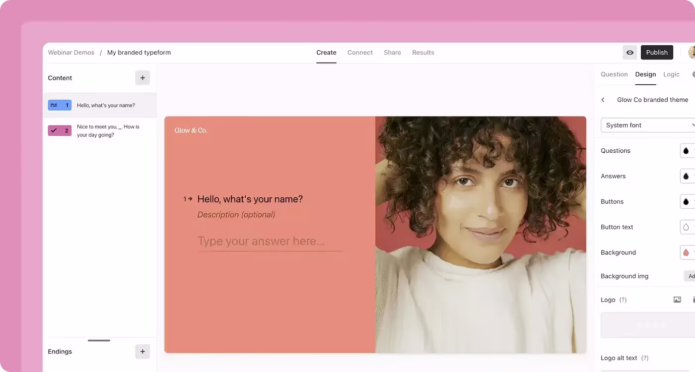 Вы можете сделать онбординг еще более персонализированным с помощью искусственного интеллекта. Например, когда вы регистрируете в Typeform аккаунт компании, приложение автоматически брендирует формы (описание бизнеса, логотип, цвета), извлекая данные с сайта, указанного при регистрации. Это решение позволило увеличить конверсию на 5%.