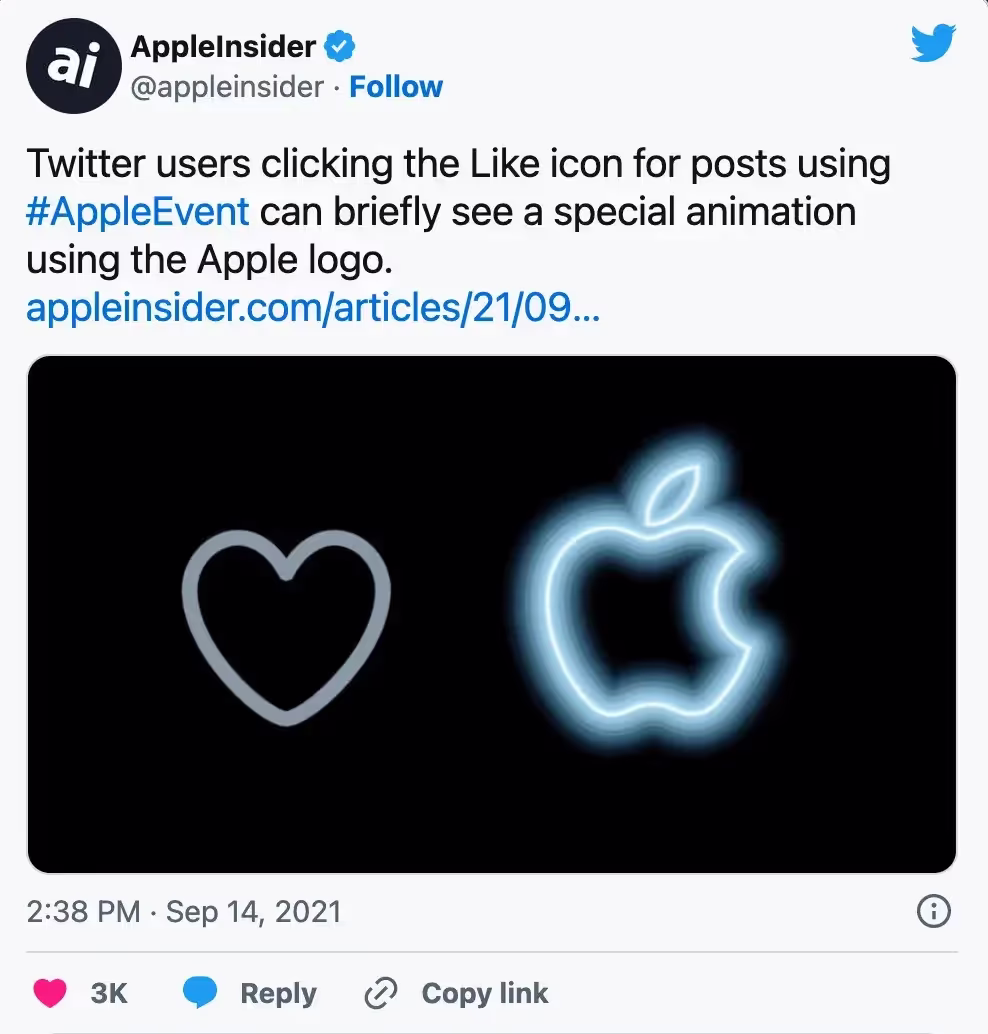Twitter добавил похожую функцию несколько лет назад. Когда вы вводите определенный хэштег и нажимаете на кнопку "Мне нравится", сердечко превращается в релевантную иконку, например, логотип Tesla или Apple.