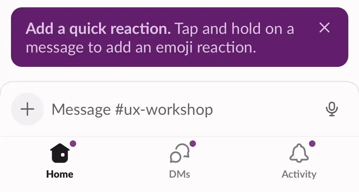 Менее очевидные шорткаты лучше всего представлять сразу после того, как пользователь выполнит действие стандартным способом. Человек с большей вероятностью обратит внимание на своевременные, контекстные подсказки, ведь они относятся к его текущей задаче. Такие сообщения должны быть краткими, легко сканируемыми и фокусироваться на одном действии за раз.
