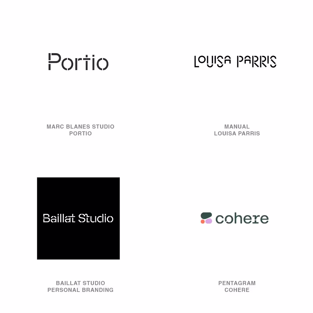 Логотип Cohere от Pentagram смотрится особенно эффектно. Для него был создан вариативный шрифт — разрывы букв то появляются, то исчезают, напоминая деление клеток.