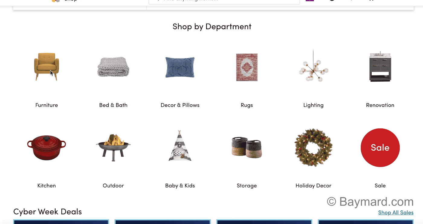 Отличные примеры заметного поля поиска можно найти на сайтах Wayfair, J.C.Penney, Staples.
