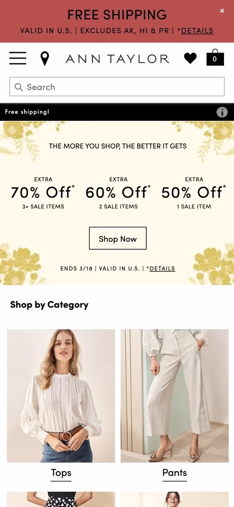 Если на сайте представлен широкий ассортимент, главная страница должна содержать как минимум 40% видов товаров. В мобильной версии можно использовать текстовые ссылки вместо изображений или в дополнение к ним.