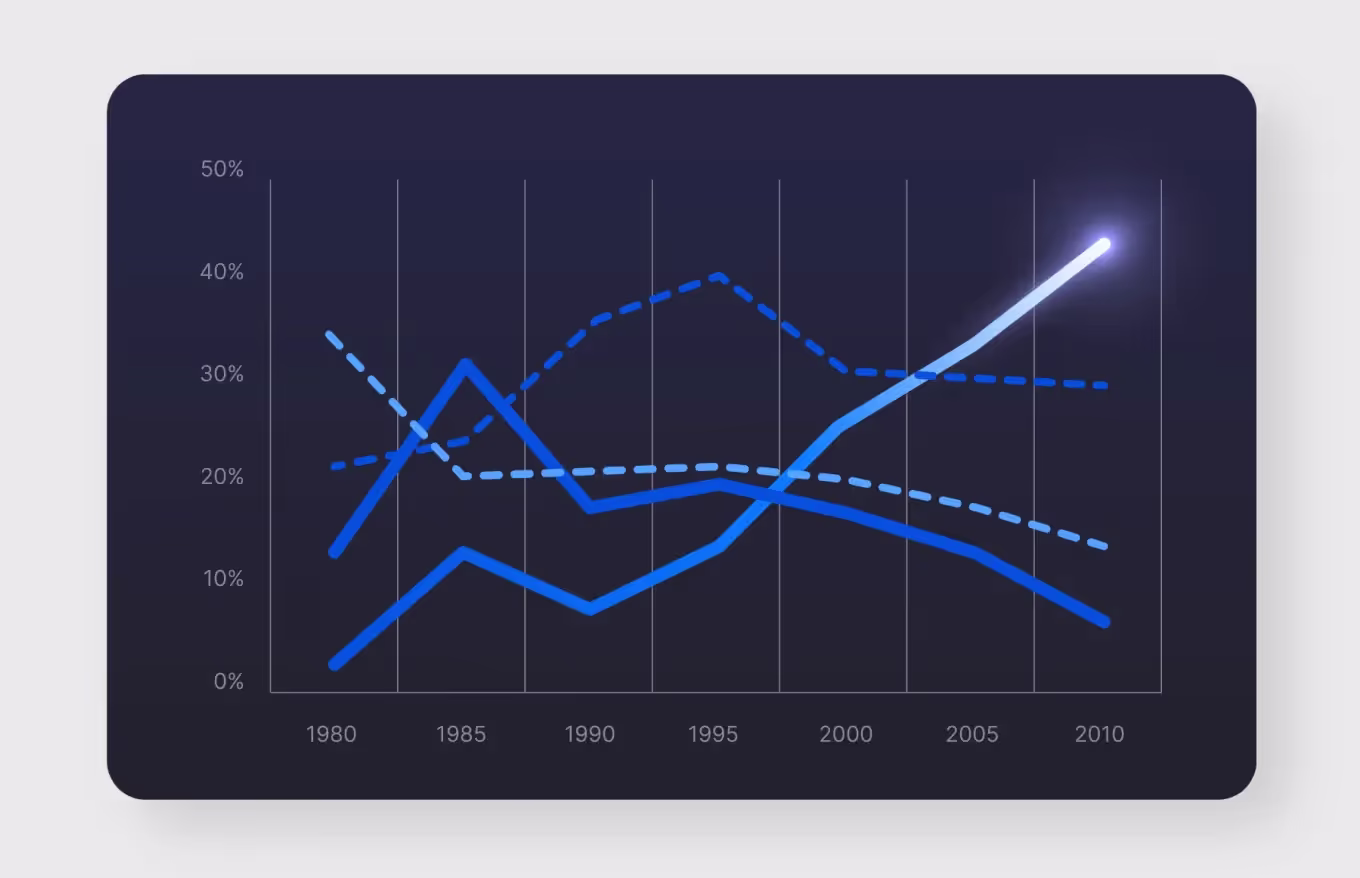 Здесь мы видим кривую, показывающую изменения и маркеры, отображающие информацию. Подходит для отображения общей динамики.