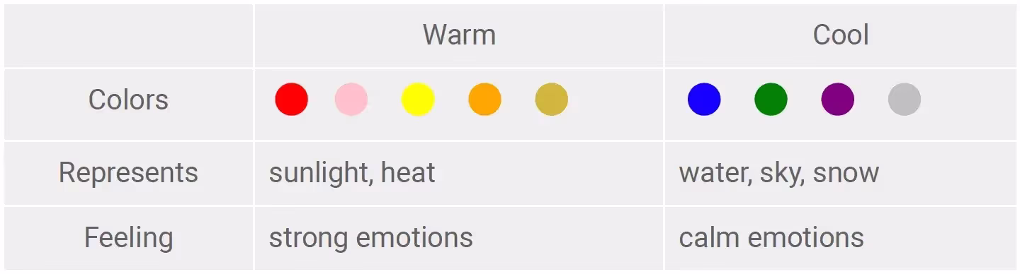 Однако разница между теплыми и холодными цветами относительна: например, при сравнении красного и желтого цветов, желтый — более теплый, чем красный. Белый, черный и серый считаются нейтральными цветами. Цвета влияют как на человеческое поведение, так и на его физиологию.