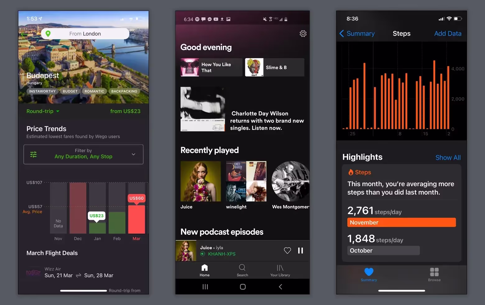 Эти мобильные приложения соблюдают лучшие практики дизайна темного пользовательского интерфейса, используя: истинно черный только для границ, правильное затенение элементов для различных уровней высоты и ограниченное количество акцентирующих цветов.