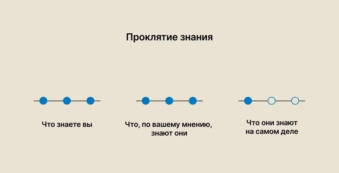 Проклятие знания — это ситуация, в которой человек предполагает, что другие люди имеют такие же знания и уровень понимания конкретного предмета, как и он сам. Бороться с этим искажением особенно важно при проведении интервью и опросов в рамках UX-исследований, поскольку сложный технический язык может запутать участников и повлиять на результат.