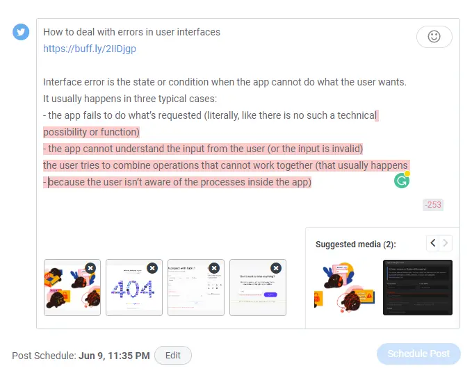 Вот как это делает приложение для автоматизации постинга в соцсетях Buffer: