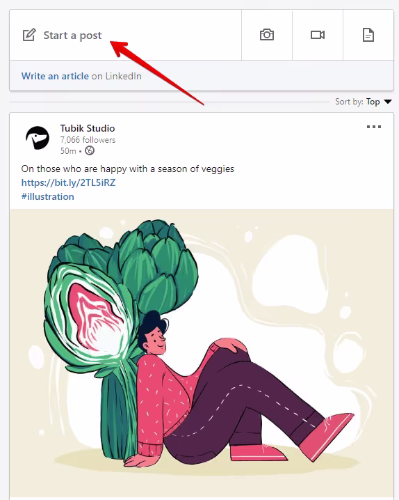 В поле для создания нового сообщения в ленте LinkedIn есть иконка и сопровождающий текст. Иконки добавления медиафайлов, таких как изображения или видео, являются второстепенными и не подкреплены текстом. Несмотря на это, они остаются узнаваемыми для большинства пользователей.