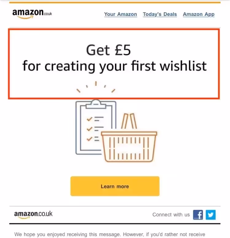 И последний, но не менее интересный пример — электронный купон в качестве вознаграждения за использование услуги на Amazon: