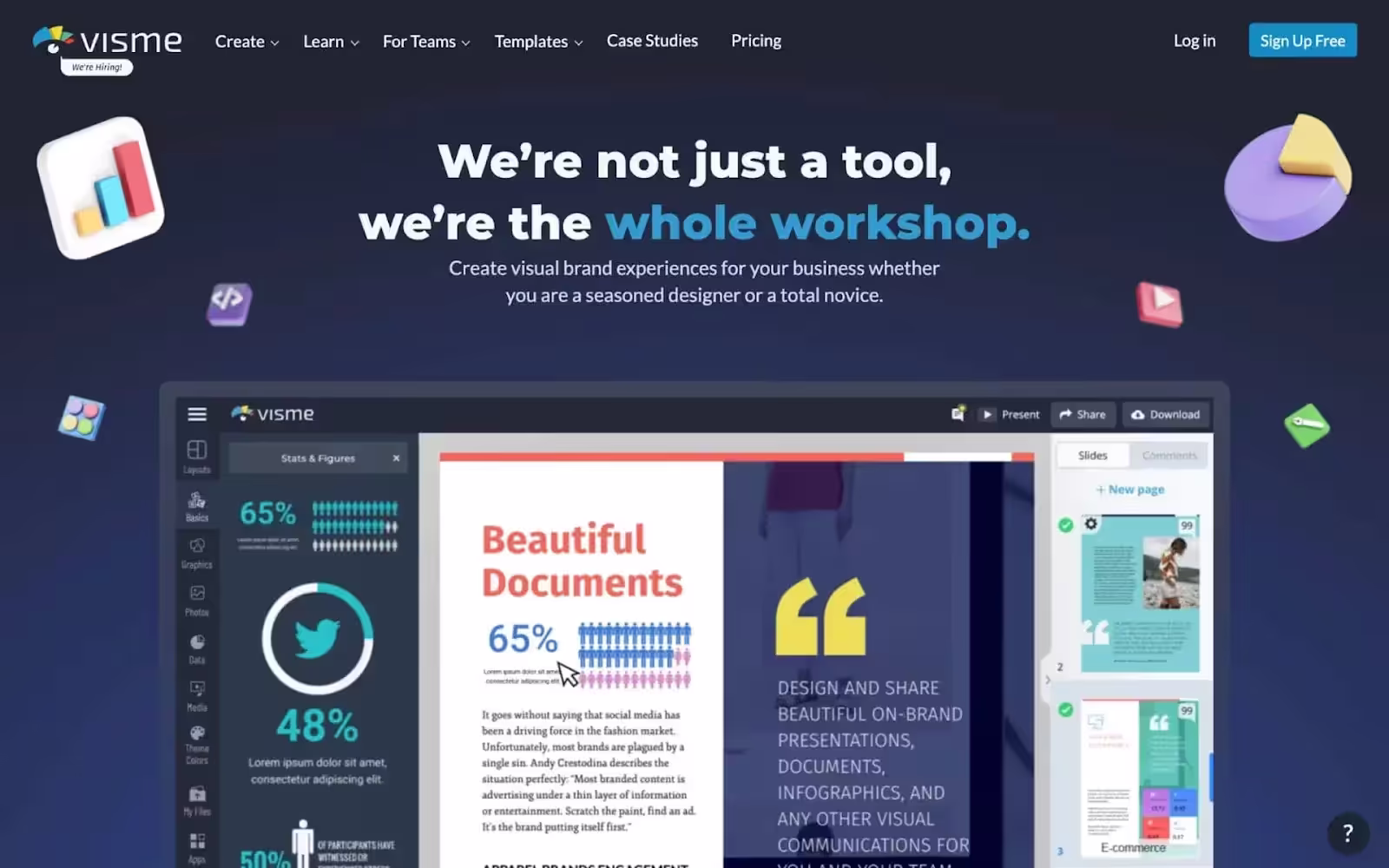 Второй инструмент, с которым мы хотим вас познакомить, — Visme. Это программное обеспечение, которое используется для создания графики любого вида, включая инфографику и видео.