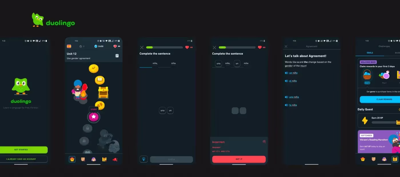 Минимальная когнитивная нагрузка. Duolingo, продукту, который учит вас чему-то такому сложному, как язык, удалось сделать информацию простой для восприятия и усвоения. Курсы разделены на крошечные главы, на прохождение которых уходят считанные минуты, а двигаться дальше вы можете, только завершив текущую главу. Это помогает сосредоточиться на поставленной задаче и снижает когнитивную нагрузку.