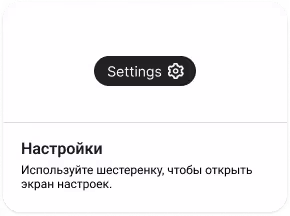 Применение: Используйте шестеренку, чтобы открыть экран настроек.