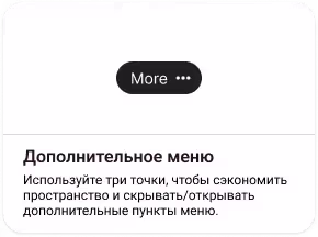 Применение: Используйте три точки, чтобы сэкономить место и скрывать/открывать дополнительные пункты меню.