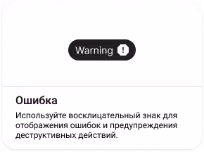 Применение: Используйте восклицательный знак для отображения ошибок и предупреждения деструктивных действий.