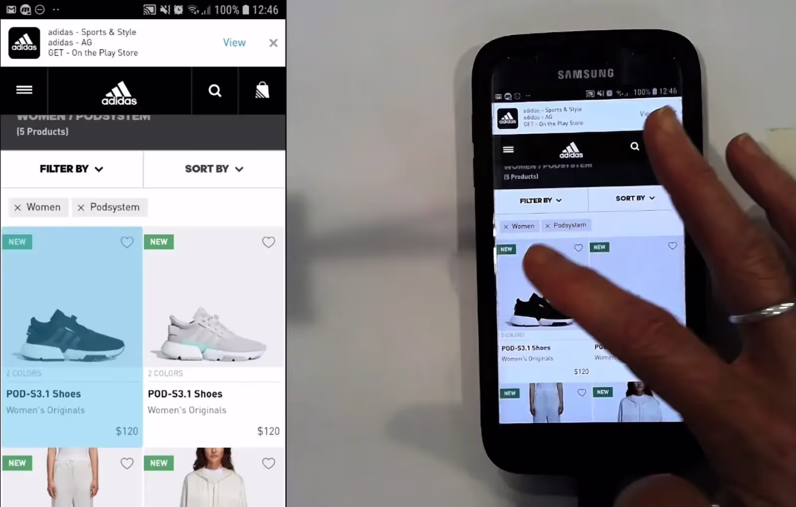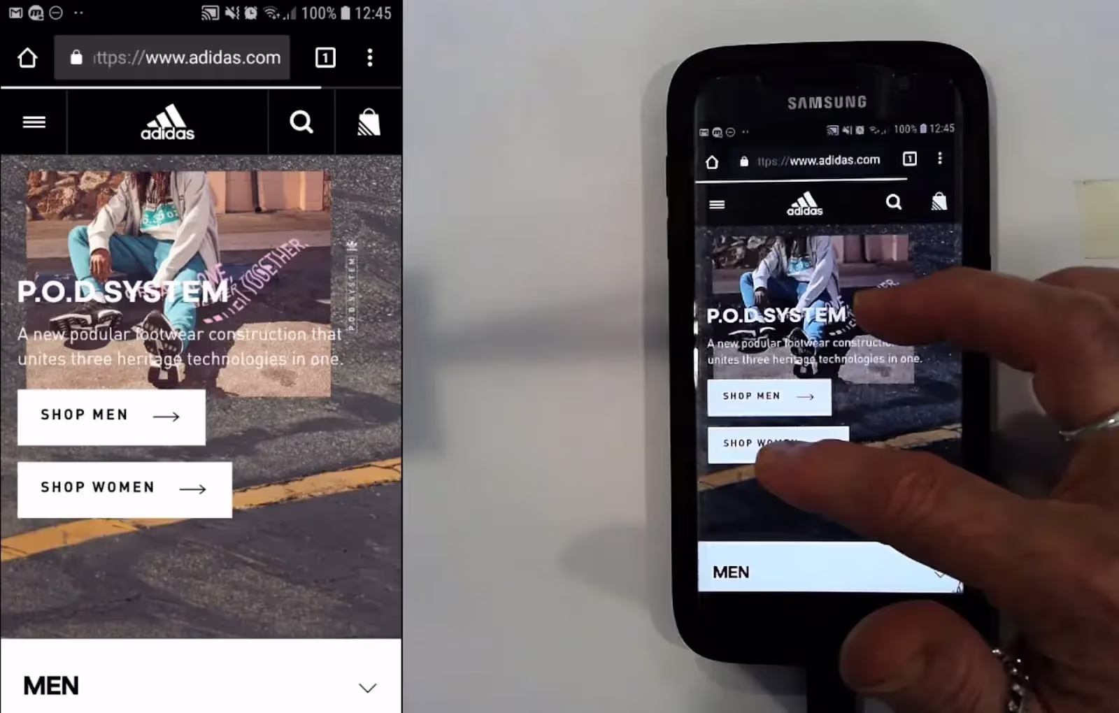 Пользователь Adidas нажал кнопку, чтобы просмотреть товар в списке товаров, затем, не получив немедленного отклика страницы, нажал кнопку еще раз. Однако, поскольку страница товара только что загрузилась, она по ошибке воспроизвела видеоролик о товаре. На мобильных устройствах пользователи быстро перемещаются по странице — этот пользователь подождал 1 секунду после первого нажатия, прежде чем повторить нажатие — и отсутствие индикатора загрузки может привести к раздражающим ошибкам, подобным этой.