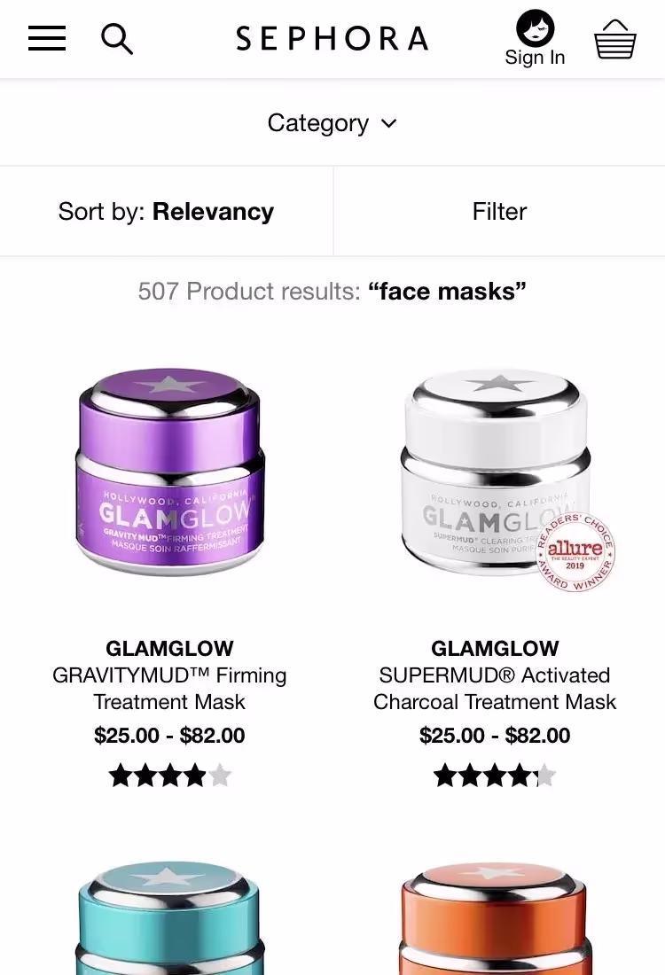 Когда предложения продуктов визуально не отличаются от предложений запросов, это создает неприятные ощущения, поскольку большинство пользователей ожидают изучить продукты через результаты поиска, а вместо этого попадают на страницу одного продукта.