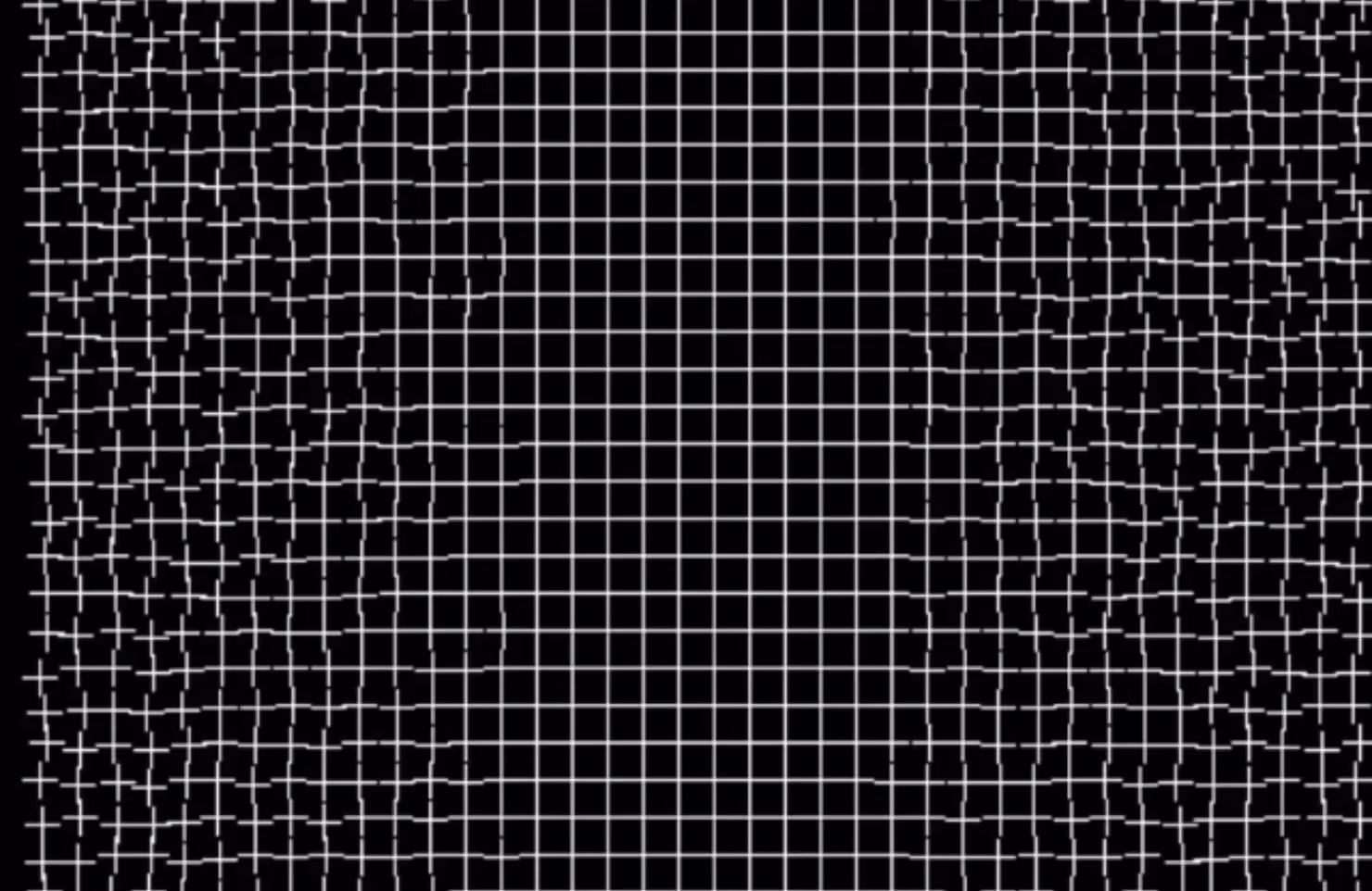 Когда вы смотрите на изображение, вы, скорее всего, видите в местах пересечения белых линий серые точки, которых на самом деле нет. Если вы сосредоточитесь на области пересечения белых линий, пятно исчезнет. Это яркий пример эффекта мерцающей сетки.