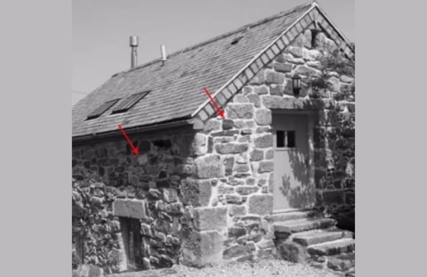 Если вы любите оптические иллюзии, вы, возможно, уже догадались, в чем тут подвох. Красные стрелки указывают на камни в стенах дома: один — светлый, другой — темный. Но так ли это?