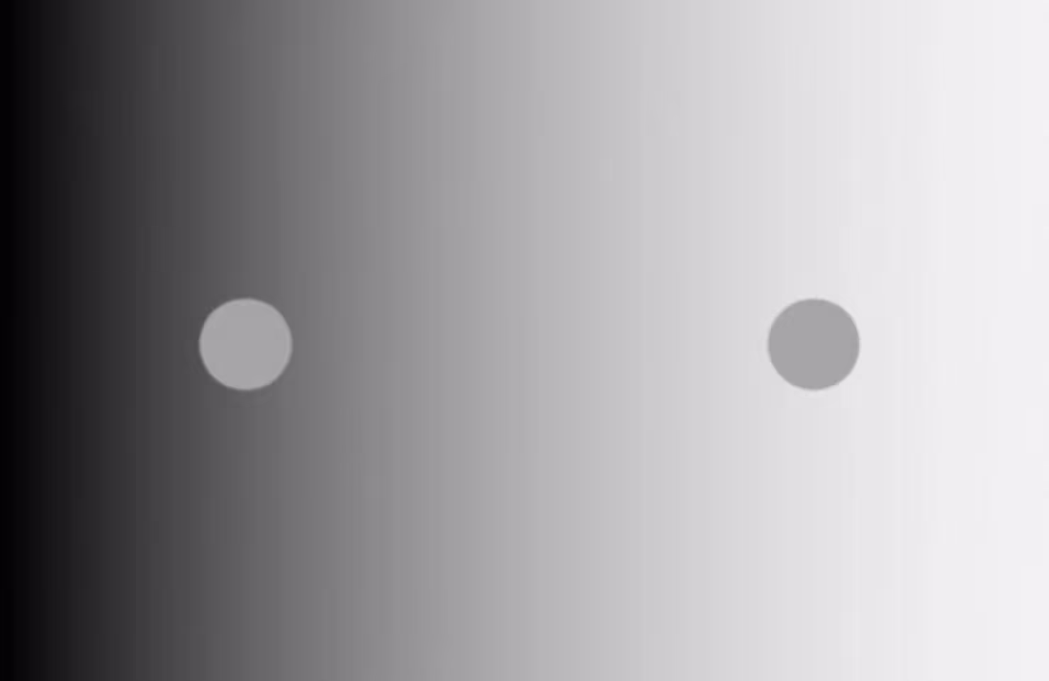 Более наглядный пример — 2 одинаковых по цвету круга на разном фоне: