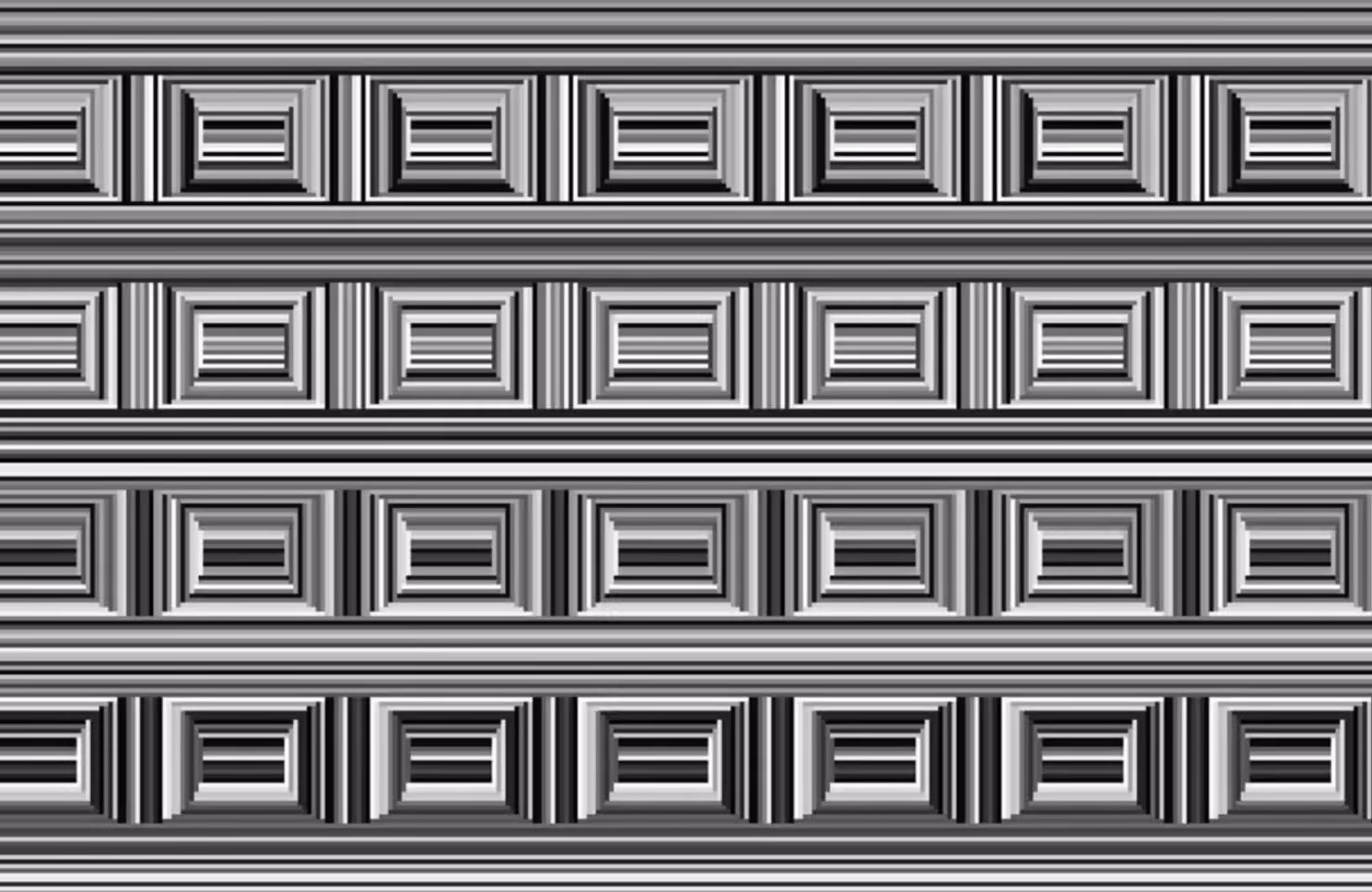 Это классический пример иллюзии периферического дрейфа. Мозгу требуется разное время, чтобы обработать различные цвета и формы на экране. Эта небольшая задержка заставляет нас поверить, что изображение движется, даже если это не так. С ума сойти!