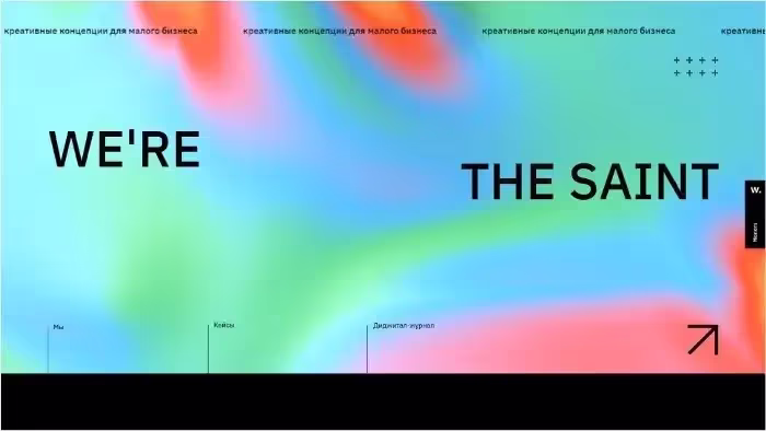 St. Martin — креативное агентство, которое сотрудничает с малым бизнесом. Фон на их главной странице представляет собой кислотный волнообразный градиент оранжевого, желтого, розового, синего и зеленого оттенков. Его движение и насыщенные цвета контрастируют с серьезностью черных элементов. Меню расположено внизу: его разделы представлены в форме 5 вертикальных черных линий. Фон на внутренних страницах намного более сдержанный и окрашен только в один цвет, но вы все равно можете заметить градиенты в некоторых местах сайта. Например, на странице “Мы” на фотографиях членов команды представлен красный двухцветный градиент. Более того, на фоне некоторых блоков есть тонкий красный градиент, что делает контент более привлекательным.