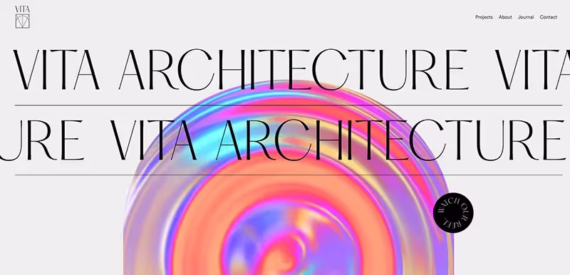 Центральный элемент главной страницы этого архитектурного сайта — яркая, красочная анимация, которая мгновенно притягивает взгляд. Это необычный дизайн, который вырывается за рамки обыденности.