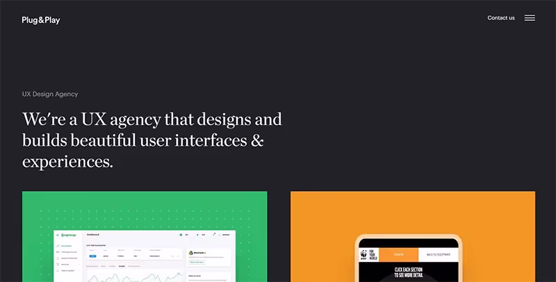 На первом экране сайта Plug&Play нас встречает очень темный серый, почти черный, фон. Но по мере прокрутки вниз и на других страницах он становится белым. Этот сайт — отличный пример дизайна, в котором темный фон используется лишь в небольшой части интерфейса, чтобы произвести нужное впечатление.