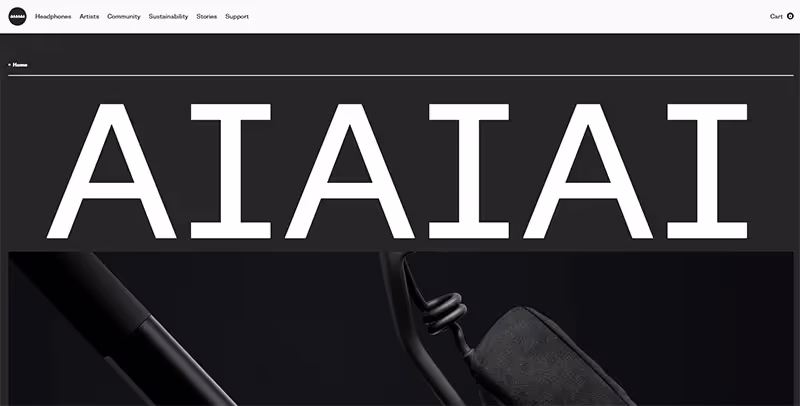 AIAIAI, производитель наушников, использует серый фон для создания профессионального, премиального образа. Некоторые изображения на сайте также представлены в оттенках серого, но есть и грамотно расставленные цветовые акценты. Хотя это несколько необычный подход для сайта электронной коммерции, такой дизайн позволяет создать по-настоящему запоминающийся бренд.
