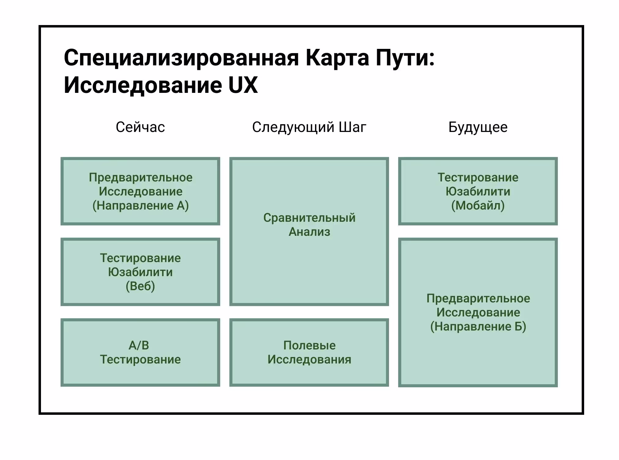 - Специализированные карты пути представляют собой сегмент карт пути в области UX и сосредоточены на проблемах только в одном направлении UX (например, в исследованиях пользователей).
