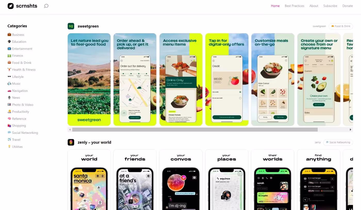 Scrnshts — собранная вручную коллекция лучших скриншотов приложений из App Store.