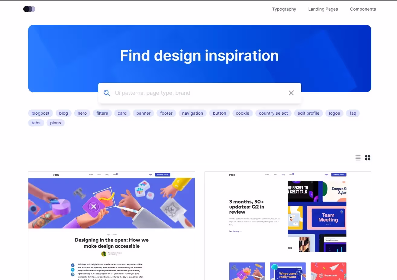 Ищите вдохновляющие примеры для мобильных, планшетов и компьютеров. Более 6358 паттернов, разбитых на категории и тщательно отобранных специально для вас.
