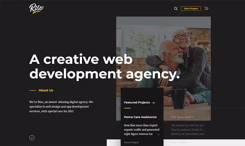 Взглянув на сайт агентства Rise из Пенсильвании, вы сразу же заметите, что его сотрудники ориентированы на результат и с гордостью демонстрируют свои достижения аудитории. На первой же странице посетителей встречает рассказ о проекте, в рамках которого компания помогла своему клиенту утроить органический трафик и получить восьмизначный доход.