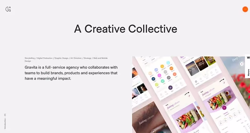 Многопрофильное агентство Gravita открыто для сотрудничества и использует свой веб-сайт, чтобы донести эту идею. Один из таких приемов — оранжевый цвет, который символизирует успех, энергию и приключения. Все на этом сайте, от формулировок и фотографий до цветовой палитры, полностью отражает заголовок "Творческий коллектив" и показывает, что сотрудники работают вместе как единая команда.