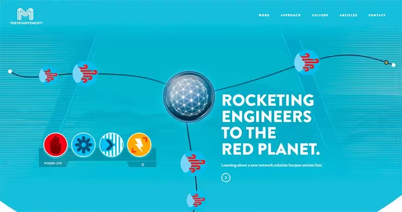 Один из надежных способов удержать пользователей на своем сайте — добавить в дизайн интерактивные элементы. Агентство The1stMovement разместило на главной странице игру, и меня сразу же затянуло в нее.