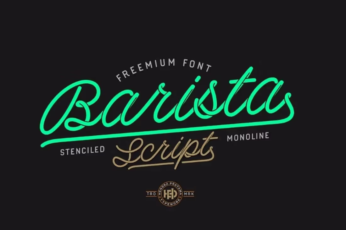 Barista — уникальный монолинейный рукописный шрифт. Он идеален для логотипов, вывесок и постеров.